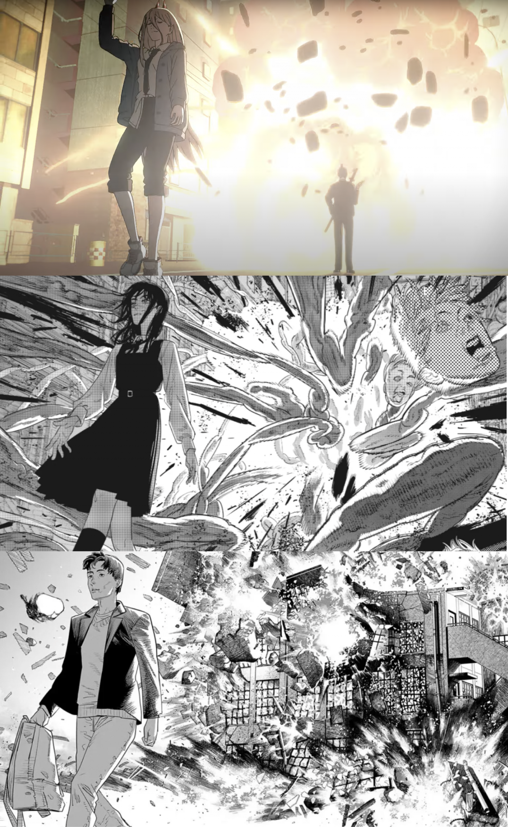 上:《鏈鋸人》片頭動畫 /中:《鏈鋸人》漫畫 / 下:《再見,繪梨》漫畫