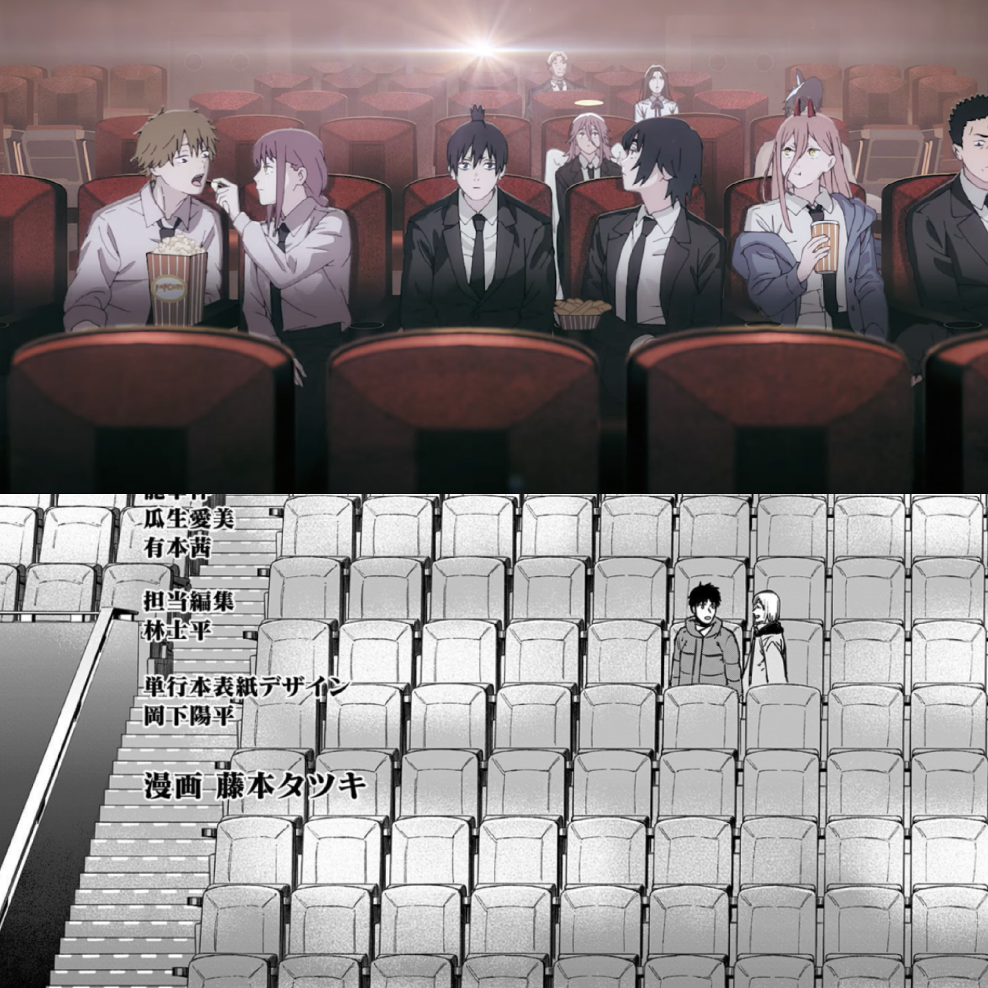 15. 0:19 - 0:27 《鏈鋸人》片頭動畫與《炎拳》漫畫裡的電影院對比