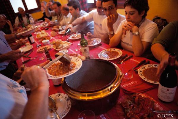 除了伊斯蘭教之外,猶太教以及基督教也都深深影響著該時的西班牙烹飪口味。猶太文化大致可從西班牙人將豆類、蔬菜和肉類用小火慢燉的燉菜中顯現,無論是 cocido(馬德里肉湯)、olla(什錦鍋/燉肉)、puchero(燉湯)都能找到猶太飲食文化的蛛絲馬跡。最有名的大概就是有濃郁口味且至今依舊有名的燉菜—— olla de San Antón 了,這道菜幾乎不會漏掉豬身上的任何部位:耳朵、尾巴、豬血、內臟、豬蹄 …… 傳說是因為當時西班牙人以宗教為由,為了趕走只吃羊肉的阿拉伯人和猶太人,所以才在料理內加入大量豬肉,但所搭配的材料卻大量採用猶太人常用的干豆、米飯和茴香等,用慢火燉煮而成,可見飲食文化實在很難區分彼此。