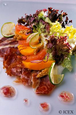 西班牙的美食能夠聞名全世界且歷久不衰,先天的優勢肯定少不了。地中海型氣候,令沿岸晴朗溫和,春、秋皆為雨季,因此為農業奠定良好條件。西班牙整體以農牧業為主,其中農業分佈於各地區的平原與谷地之間,中部平原盛產小麥、大麥和其他穀類;埃布羅河 (Ebro) 身為西班牙境內最長的河流,其河谷地區不負眾望地產出最主要的經濟作物-甜菜。其次,豬和家禽皆為主要肉類來源,像是出了名的伊比利亞火腿 (Iberico ham) 鹹鹹的滋味無論是搭配麵包或是沙拉,都讓人吃得感動到落淚,更別提那超級適合下酒的紅椒味香腸 (Chorizo) 了。