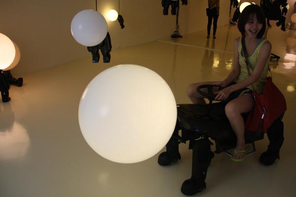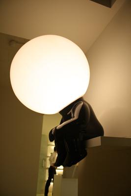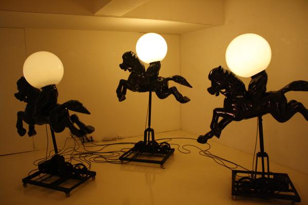 本次展覽融合新媒體藝術與科技裝置,林建榮的新作不僅削弱了燈泡人本身的主題與結構性,除了延續燈泡人系列的童趣及懷舊的氛圍,更添加了一種古怪、詼諧的荒誕虛無,專注於探討人類面對自己及他者,甚至是周遭環境的疏離感,更加深刻地認識、剖析自我。如同燈泡人雖遊戲於熱鬧的樂園場景,但卻難掩內心的孤獨嚮往,騎著木馬卻毫無目的地搖晃在朦朧的燈光下,潛藏著一絲絲的孤寂感,反映出現代人的共同心境:疏離。