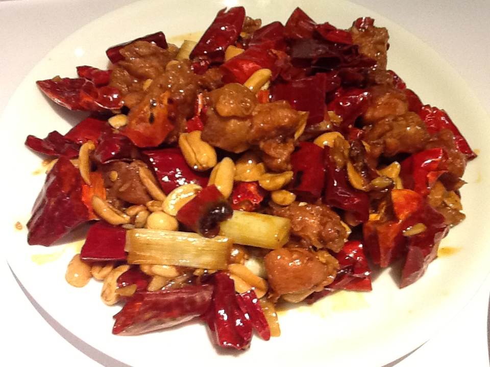 比較非正式但不致太離譜的宮保雞丁作法呢,首先得取去骨雞胸肉切丁在醬油、米酒、太白粉調成的醃料裡抓過,稍微過個油,然後另外熱一油鍋爆香蒜碎、小辣椒、花椒、乾辣椒,之後倒入雞丁同炒,酌量加醬油、米酒、白醋、麻油,最後灑上蔥段和油花生,收乾湯汁即可。