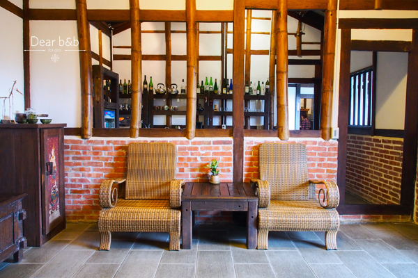 日式文化瓦,白色牆面,原木樑柱,堅持要維持老屋原貌的兄弟倆,沒有重建古宅而是費盡心思整修了一番,在有限的預算下,從搬石頭到鋪磚瓦,都是兩個人自己來,何大哥笑著跟我們說,他第一次體驗到自己正在「蓋」房子,就是這般辛苦、這般拼命,最後才能感受到夢想即將圓滿的欣喜若狂。