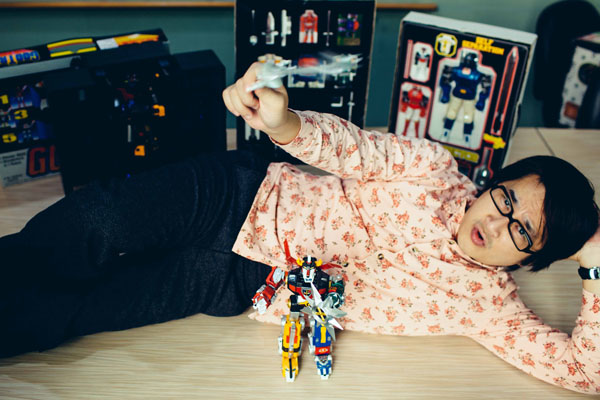 「你們不覺得現在的機器人玩具都比較不好看嗎?我小時候真的是機器人的輝煌時代,線條美感、組合創意都發揮的淋漓盡致。而且以前很多機器人玩具都是用鉛做的,比較好看,後來被驗出來對身體不好,大部分就都改成用塑膠做了,質感還是有差。所以日本人要推出復古的鉛製玩具時,就取了一個很厲害的名字叫『超合金』,聽到『超合金』就覺得超帥超想要啊!」