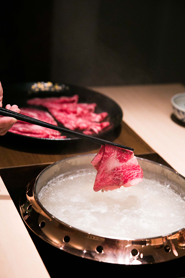 三是上菜的順序,「在日本,幾乎百分之百都是先吃肉、再吃菜。而菜也是涮一下而已,要吃它的甜味,而非讓甜份都流失在湯中。也因此不選用浸泡式的蔬菜,多以快熟的蔬菜為主。」