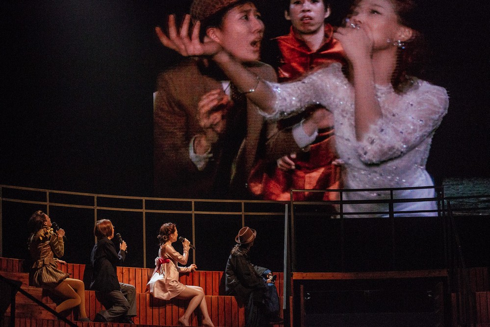 不由得好奇,如果當代戲劇仍可以存在合唱團,那合唱團的形式可以是什麼呢?設計成解剖教室的舞台,U 型觀眾台上演員在階梯上配音,面向另一頭的樂隊,以及中途以伴唱影片形式出現的 KTV〈詛咒之歌〉,是作為一種民眾聲音的反抗嗎?如果是,那在舞台的時間可是不長。類似的結構在下半場,清潔員也是可見平民之聲。但歌曲與口白都是證詞嗎?〈詛咒之歌〉的確是重要的舞台效果,讓上半場的戲劇節奏得以活潑一點,有喘息空間。上半場的《理查三世》,仍有許多對於台灣舊聞的反諷,如士林王家都更案,雖然不知道這還能不能說是切合時事。顯然不同於上半場的控訴,下半場劇情核心關懷直轉急下,變成了 Word-world-war。由英語詞語頭韻帶動的聯想開展,對比著美國這幾年針對卡斯楚、賓拉登與海珊的審判,深入對政治戰爭的抨擊,並將焦點帶回六十年紅白玫瑰戰爭的史實。上半場的政治與下半場的政治,一為國內,一為國際情勢,是否在戲劇結構上是和諧的,有待觀者的判斷,也許是見仁見智。