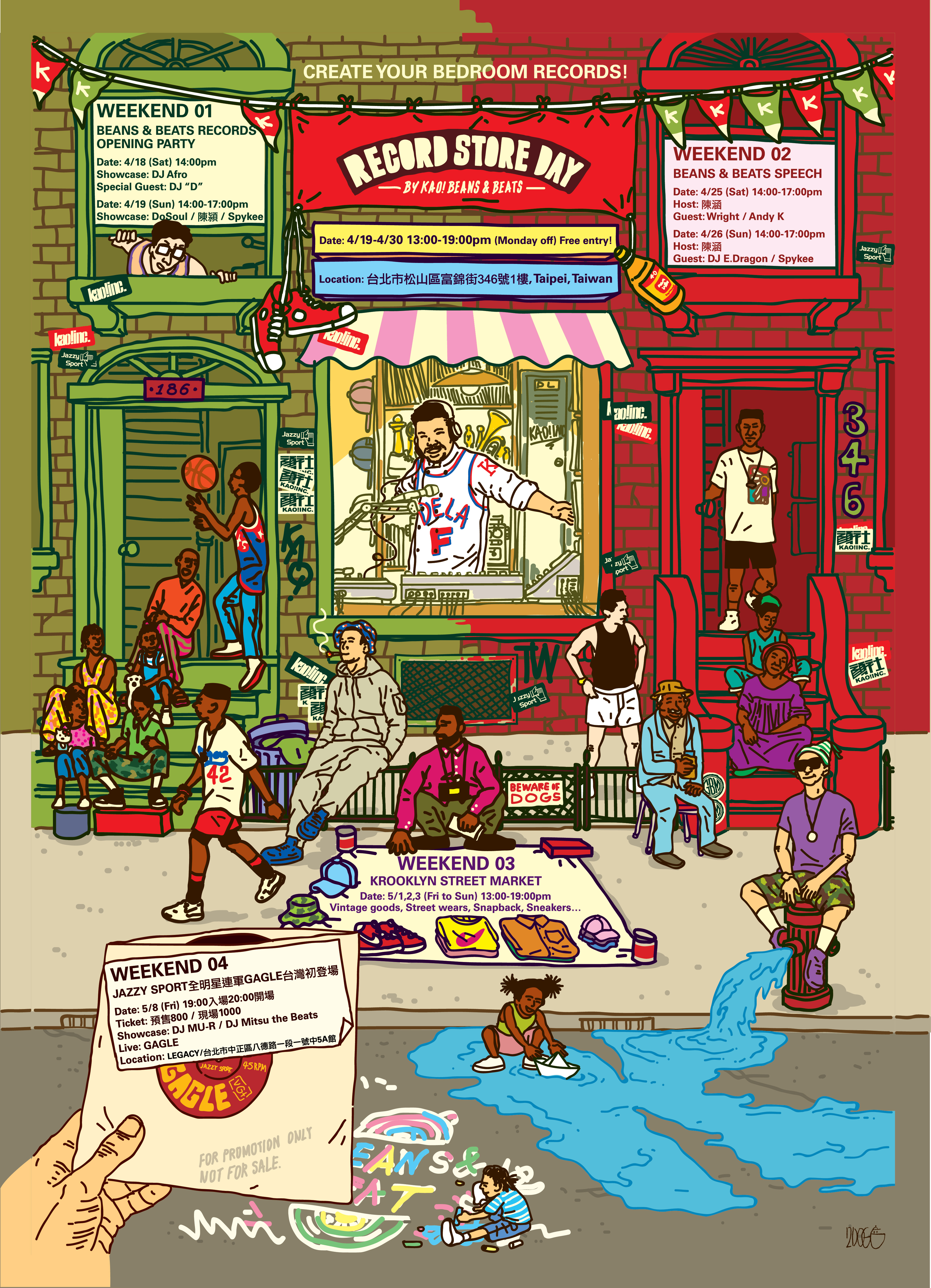 台灣嘻哈獨立唱片廠牌「顏社」自搬遷到號稱台北代官山的富錦街後,在去年開設了『BEANS&BEATS CAFÉ』除提供好空間與好咖啡之外,更預計在代表國際唱片日的 4 月份第三個週六,4 月 18 日展開新篇章『BEANS&BEATS RECORDS』。這次顏社以獨立唱片行為志,獨家引進日本 Hip Hop、爵士及靈魂樂等不同風格的音樂廠牌系列作品,『BEANS&BEATS RECORDS』將是顏社今年第一件又帥又好玩的事。