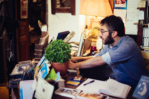 聖托里尼不愧為希臘最著名的觀光島嶼,豔陽敲打在大海的波浪上發出鑽石的光彩,天空與海洋都藍得不像話,路上遊人如織,一間接著一間的觀光禮品店、希臘菜餚餐館,街上時不時可以看到在大太陽下提著婚紗裙襬汗流浹背的新人跟在吊兒郎當的攝影師後面,散步偶爾迎上當地的建築工人或店內掌櫃的當地人,整體都散發出「真拿你們觀光客沒辦法啊」的無奈氣氛。在滿街標榜道地希臘菜的餐館群中,有一道階梯通往地下室一家名為「Atlantis Books」的書店,銘黃色的外牆上立著招牌寫「五歐元租貓」,階梯上散賣著幽默的文書用品。地下室內別有洞天,除了塞得滿室的各國語言圖書外,收銀台後方牆壁還繪製了書店自 2004 年開店以來的編年史,英文 fiction 書架上貼滿各種便條紙,其中包括「別問了,這裡沒有賣《格雷的五十道陰影》啦」,但這裡卻有《小王子》的全球第一版,並讓我買到在台灣已經絕版的垮世代那批浪人的小說。