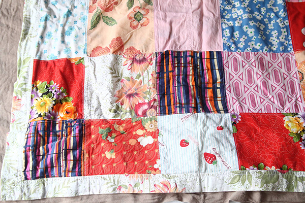 林怡芬除了從出生後的嬰兒服到十歲前的一些衣裝,都是奶奶親手縫的;就連蓋的被子也是奶奶將做衣服剩下的、一塊一塊四方形的碎布拼起來縫成一條棉被。「小時候覺得這些都是理所當然的事,沒有特別覺得什麼。長大後才發現,能擁有手工被子和衣服是多麼珍貴的事,每一塊拼布的組合,都是奶奶用心配色縫製的。我們每個家族的小孩,都有一條這樣的小被子陪著成長。」她說,這樣的棉被充滿著台灣當時的色彩啊。