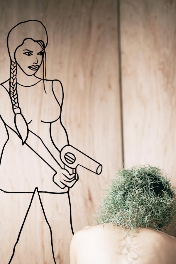 拍攝當日,因為李霽沒辦法取得菟絲子,所以他以同屬蔓性植物的松蘿替代,松蘿又名女蘿,詩人李白曾在詩作中以女蘿和菟絲來比喻男女。相較於菟絲子必須寄生在其他生命之上,松蘿可以從空氣中吸收水分,自行光合作用獲得養分。松蘿也是空氣鳳梨的一種,因為不需要種植在土裡便能生長,所以經常被當作室內的景觀植物。
