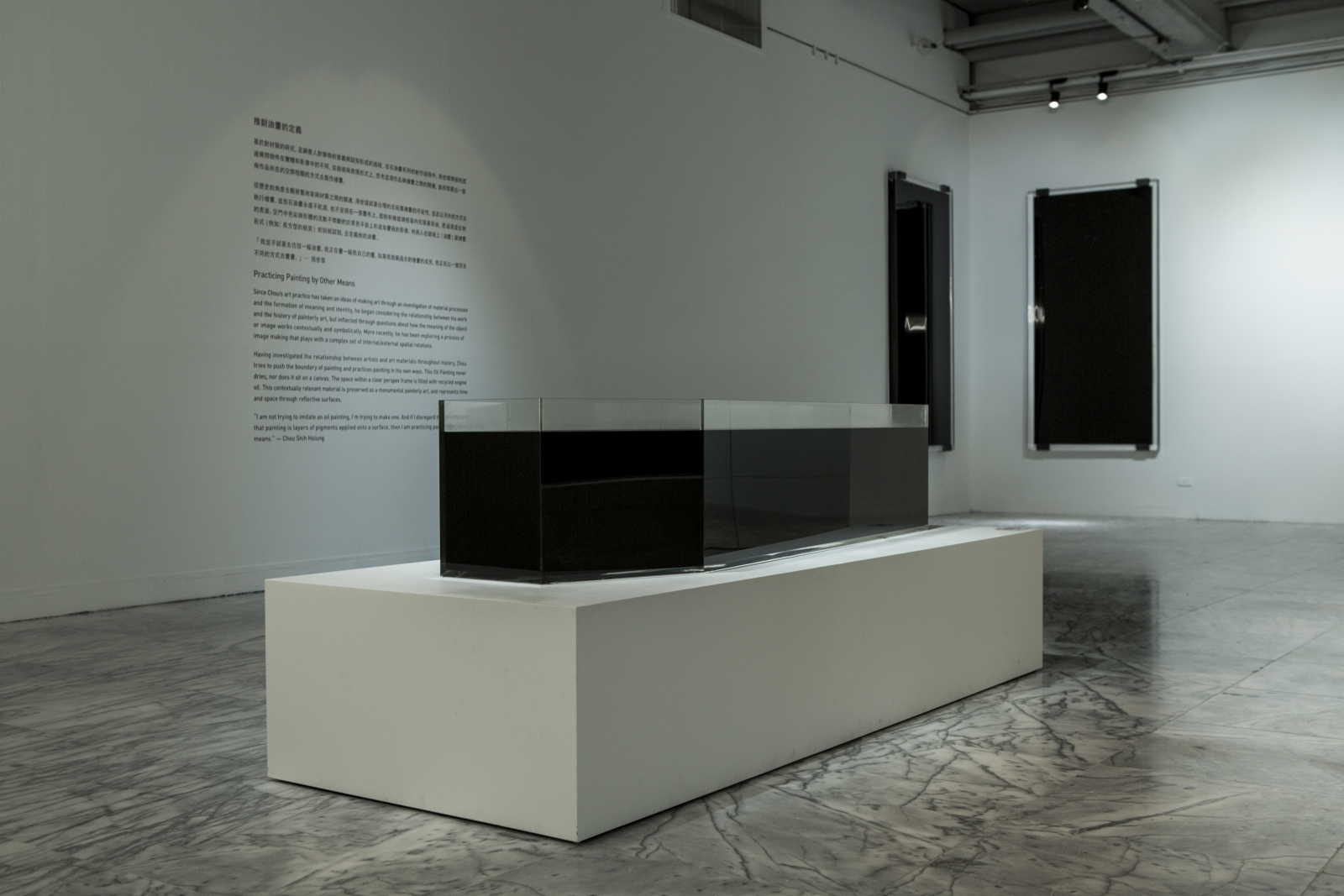周世雄「石油畫」系列作品緣起藝術家不擅於傳統繪畫,進而開始去研究繪畫的起源與歷史,發現古時的藝術家在創作時還需要自行研發顏料,因此顏料的發明製作在早期也是創作的一部分。因此周世雄選擇了石油作顏料,把它封存在如畫框的有機玻璃內,讓它變成一幅漆黑卻高度反射的畫,透過高度反射的表面,重現它所屬的空間、空間中色彩與形體的流動不間斷的於黑色平面上形成如畫般的影像。相較於傳統油畫會乾涸且單一畫面,石油畫永遠是液態的,畫面不停地流動,此系列於倫敦首次展出時,展名《Wait Until It Dries》說明了「石油畫」與傳統油畫的不同之處。