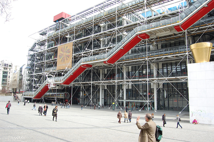 無獨有偶,艾菲爾鐵塔落成後九十年,巴黎再度出現一座「驚世駭俗」的建築物。1977 年,由英籍建築師理查.羅傑斯(Richard Rogers,1933-)和義大利建築師倫佐.皮亞諾(Renzo Piano,1937-)合作設計的龐畢度藝術中心完工啟用。不同於鐵塔的興建目的為觀光和展示科技,龐畢度中心則是一座結合多功能的國家級藝術文化場館,裡面包含公共資訊圖書館、國立現代藝術美術館與聲學、音樂研究和協作學院。