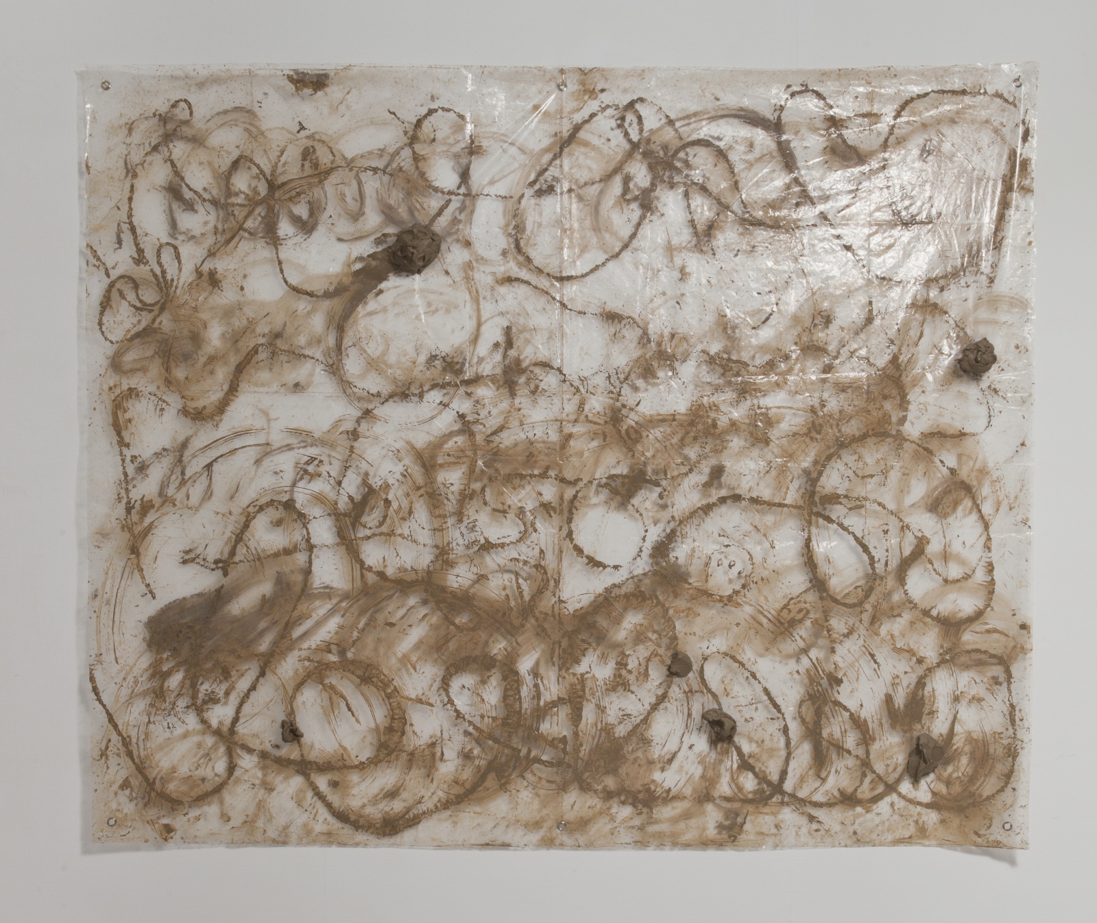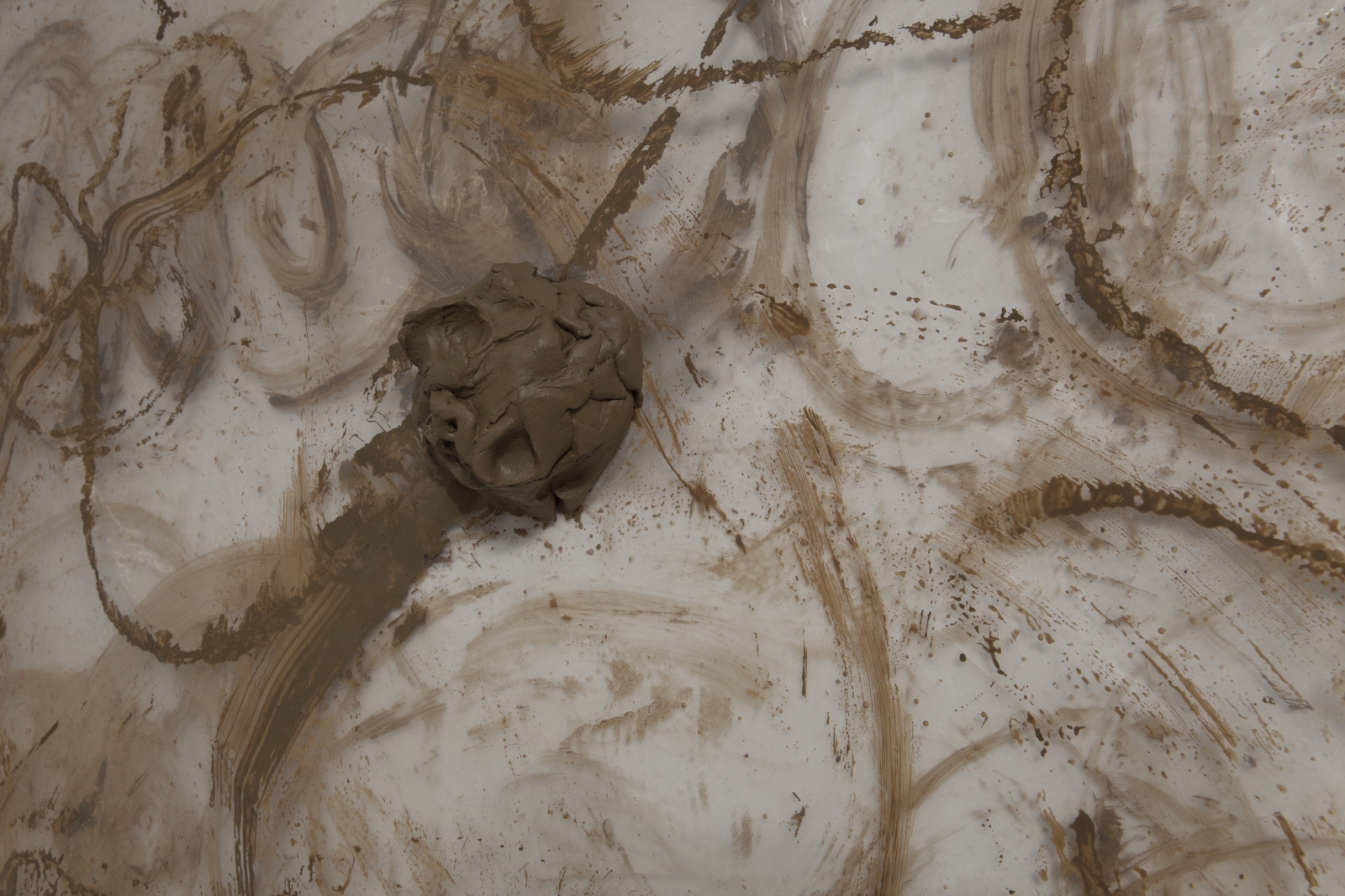 在展場中,《一個青年雕塑家的畫像》將觀眾拉進了雕塑工作室的空間意象,在入口處,放置幾乎呈現立方體的黏土堆雕塑。在透明塑膠布上,整個關於雕塑家的創作過程,製造─模擬真實的過程,被挪置到畫廊空間之中。1920 年杜象工作室開工的第五年,杜象和曼瑞(Man Ray)發現了工作室被遺忘的大玻璃上積滿灰塵。昏暗的室內,蒙塵的玻璃在兩人眼下閃現出神秘的美感,於是就決定將它拍攝下來。這個作品透過曼瑞,將光圈調到最小曝光了一個午餐的時間,待曼瑞與杜象回來的時候完成。在《一個青年雕塑家的畫像》像是黏土塗抹的塑膠布,連接了杜象現成物的藝術史,重新講述何以這些塗抹的痕跡可以成為藝術作品。同時,如果現成物可以出現模擬的概念,反而正是這種創作過程中對於原件、寄生在創作過程中的概念所致。現成物透過終結所有物的生產關係抹除背後的脈絡,重新組合的過程中,現成物不再直接投射於一個真實世界的模仿關係。就如同小說的虛構話語必須投射於世界的日常語言,作為真實的一種延伸,在這裡,任何羅智信現成物創作的模擬,也被框限於現成物的邏輯。《地板項目》可以說是透過「現成物的模仿」這種矛盾修辭,以其虛構手法框限了現成物藝術的邊界,觀眾也得以走進小說與藝術之間的曖昧關係。
