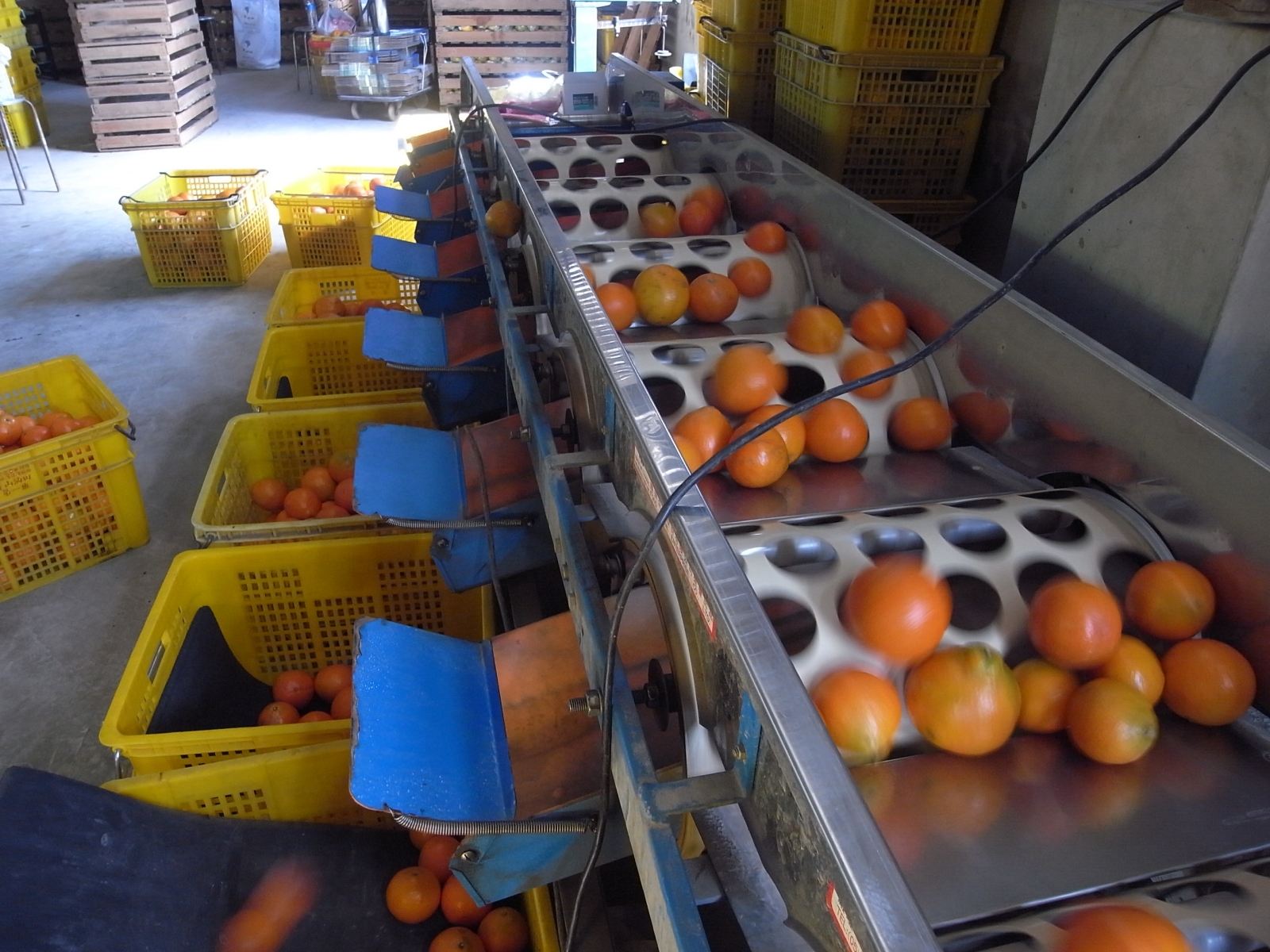 | 採收下來的果實要如何儲藏也是有撇步的,首先要用選果機以圓周大小分級。 |