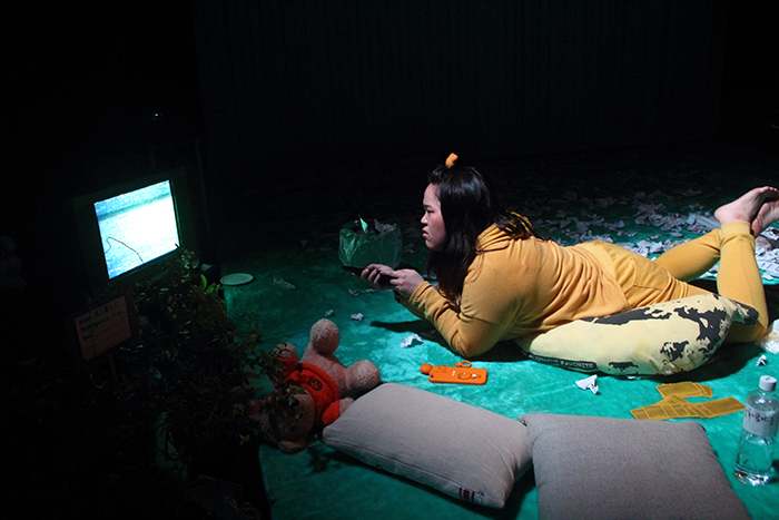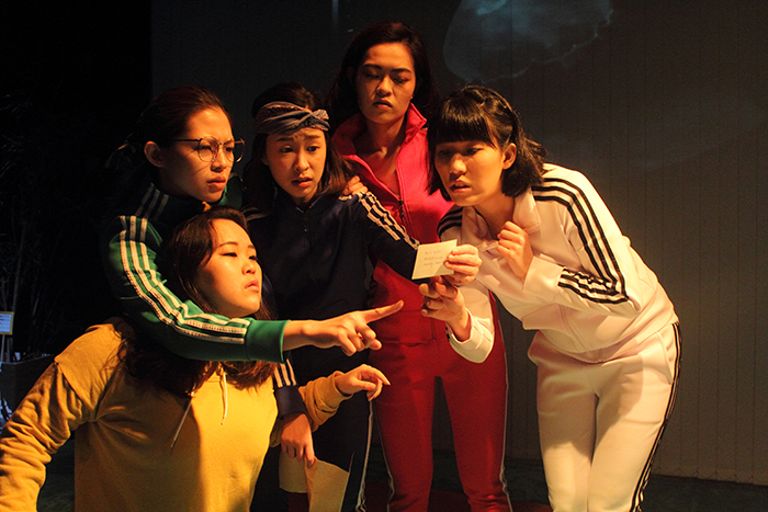 戲劇接下來以喜鬧節奏,切換至概念徹底宰治人類的世界觀。女性主義在格言與填空題之間穿梭,但戲劇同時不斷從內在湧出對僵化思考的突破。說明書以制式形式引導讀者理解封閉的女性主義,但當詮釋權回到五女身上,生活場景與經驗卻不斷進行解放與破壞。考題被以更自我、「錯誤」的方式答出,這是喜劇的成立基礎:當答案先以固定型式被想像,生活的豐富意義在此前便被屏蔽。因此五姊妹的創意作答,每一次都反覆突顯考題的不足。這樣的解放形式在知識與概念不斷增加的社會裡,成為令觀眾鬆一口氣的笑話。這也是戲劇內在自我對抗的過程,作品藉此形式不斷提醒自己:所有斷言跟展示,必須與完整的生命息息相關。
