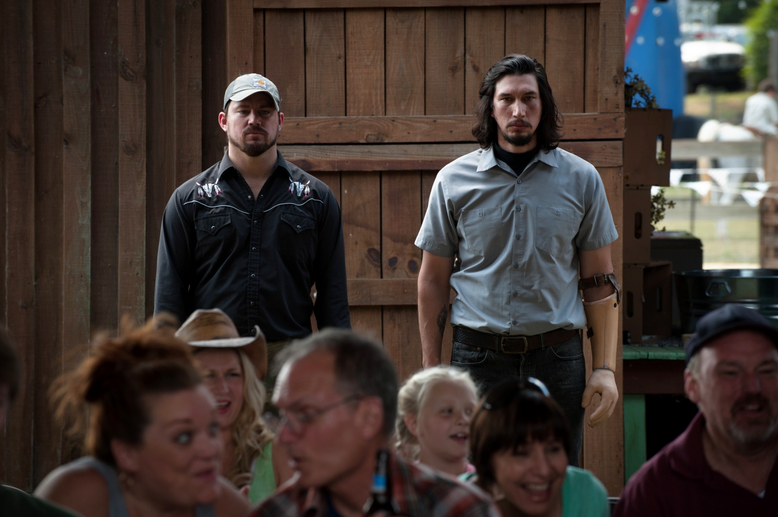 所以當然,我們不能忽略《羅根好好運》真正的創作意圖,在於角色階級的跳水。上面說它是「鄉村版」《瞞天過海》都還嫌太浪漫了,其實這些根本是內陸紅色州裡的、工作機會都被沙漠化的、知識水準與機會都缺乏的中下層白人們。而在這每天晚上,我都在 YouTube 上的美國政論脫口秀得知川普又突破了什麼荒唐下限的年代,終究還是要靠電影,來讓我們知道那些藍領白人們的生活是什麼樣。這在去年已經有悲壯又嚴肅的《赴湯蹈火》(Hell or High Water)辦到了,今年則輪到《羅根好好運》。片中的人們不只底層,還都有殘缺:查寧.塔圖飾演的哥哥膝蓋有傷,亞當.崔佛(Adam Driver)飾演的弟弟少一隻前臂,丹尼爾.克雷格(Daniel Craig)飾演的爆破高手被關在牢裡,他的兩個弟弟則是都腦袋空空。這些人舉目所見,只有家人和自己的生活,而連這些都守護不好了,哪有什麼餘力去「思辨」其他的什麼議題?
