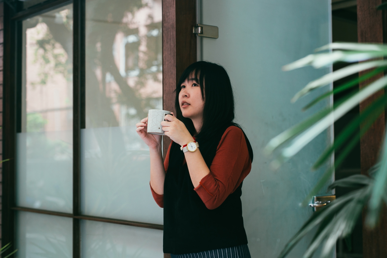 《秋刀魚》辦公室坐落於鬧區的巷弄中,這一天早晨七點,我們伴隨著夏季末尾仍炙熱的陽光前來拜訪,頤華通宵工作了一晚,除了帶著難掩飾的倦意,更多的是完成工作的興奮感。身為《秋刀魚》的主編,頤華的工作忙碌,她工作時不聽音樂,需要絕對的安靜,同事們也都很了解她,在截稿期間辦公室總維持著寧靜而專注的氣氛。