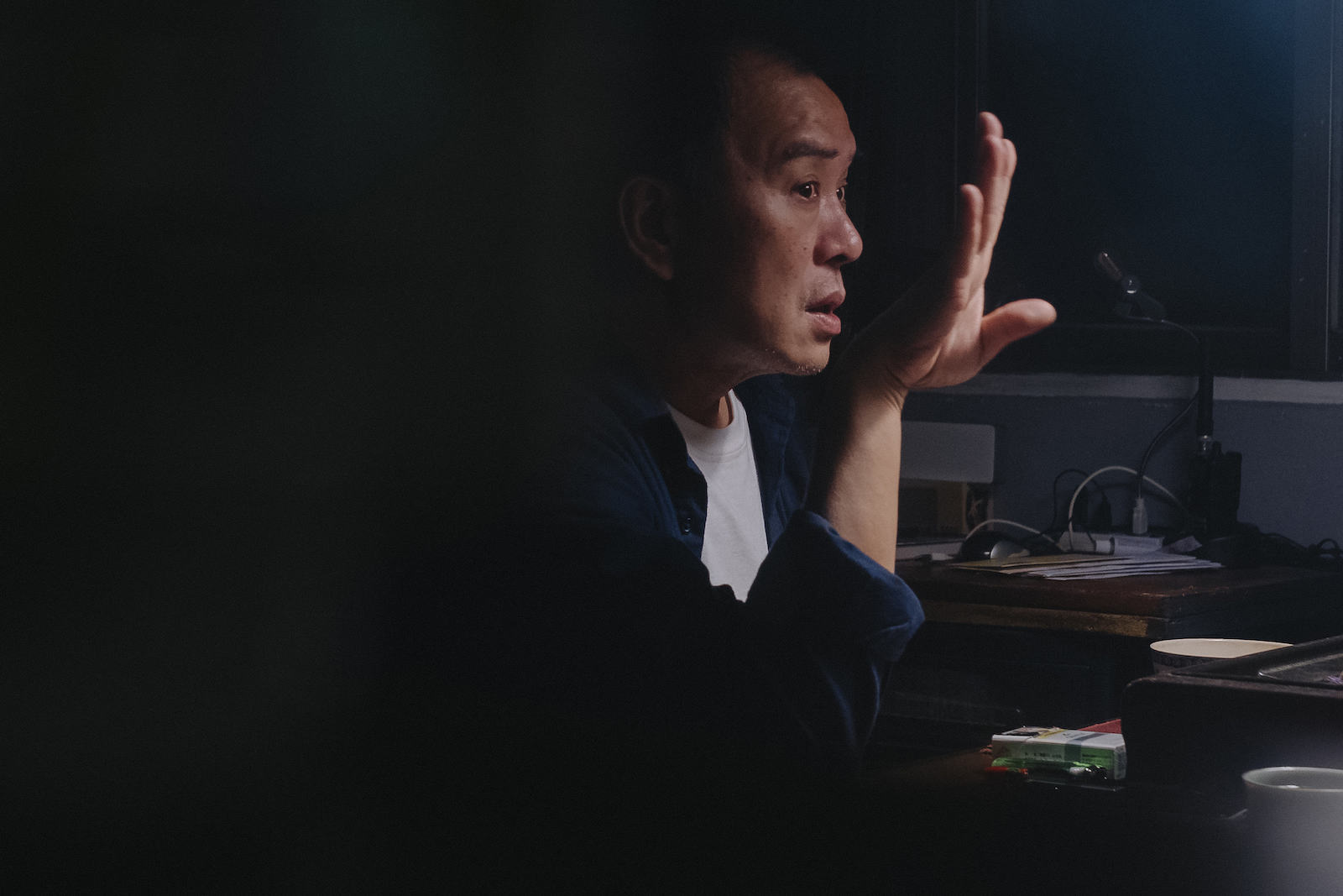 他在《鹹水雞的滋味》裡曾讓演員提出蝴蝶效應,以正向方式解釋——只要一點點善意,或許可以改變一個人的狀態。但講一講,那過程還是少不了苦啊,「因為我們沒有冰箱,他們吃的那個雞是臭的⋯⋯放房間,房間 38 度欸,汗流得他媽跟鬼一樣,還封窗戶。我們沒有電風扇喔,熱到,唉——」