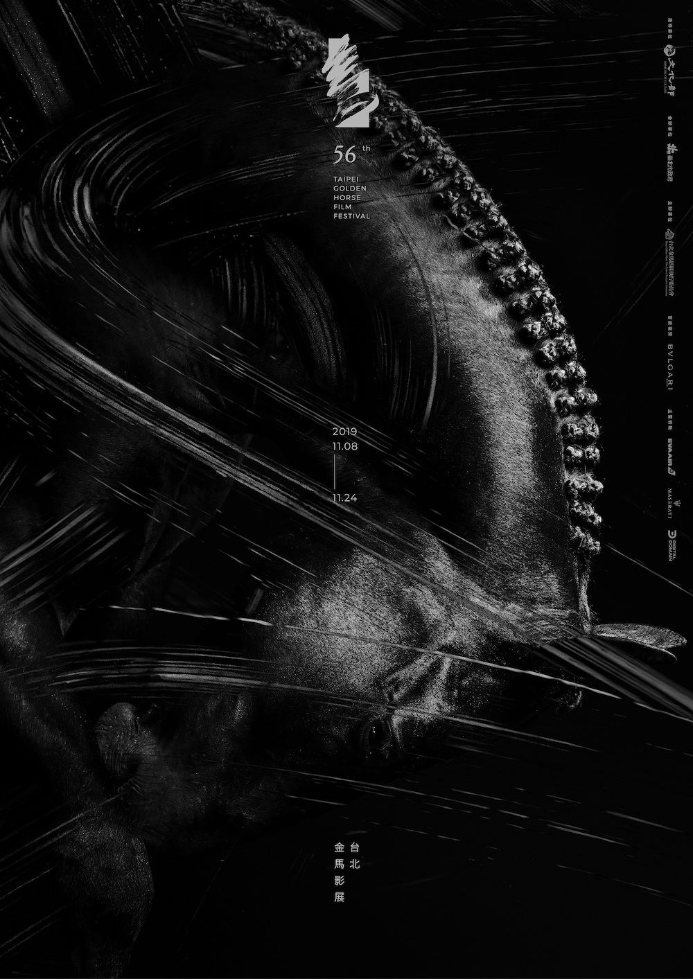 另外金馬 logo 的部分,「金」的實,「馬」的虛,讓兩字在書寫之間漸漸浮現,也像是黑馬的現身。每一批黑馬經歷不同的旅程與淬煉,才會在最後突破、讓大家看見你的樣貌。黑色背景上一道道銀色的「戰痕」,呈現的是這樣的軌跡。