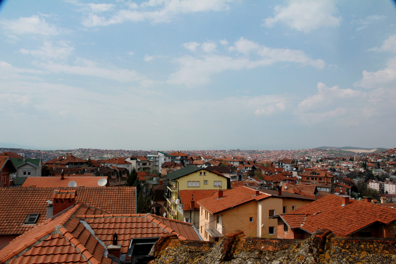 拉開窗廉,一種帶有塵灰質地的天光灑入,也許是剛才待在死亡蔭谷般的地下室之故,沒發覺日光已將市內一大片紅瓦屋頂照得溫熱灼亮。一眼望盡並無高樓阻擋,這裡是科索沃首都,普利什蒂納(Prishtina)。