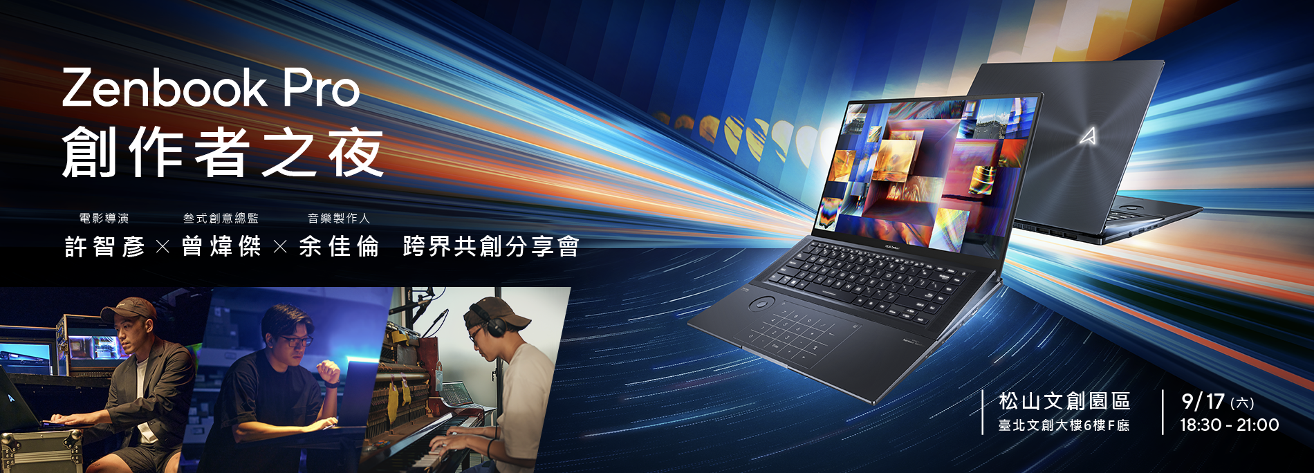 本次三個領域創作者們使用的 ASUS Zenbook Pro 16X OLED 創作者筆電,搭載全球領先的 16:10 4K OLED HDR 窄邊框觸控螢幕、第 12 代 Intel® Core™ i9-12900H 處理器和 NVIDIA® GeForce RTX™ 3060 顯示卡。螢幕配置 PANTONE® 色彩準確度認證的精準顯色,並使用 6 顆 Harman Kardon 認證喇叭,視覺與聲音呈現質感兼具,是讓創作者 have fun 的絕佳選擇。