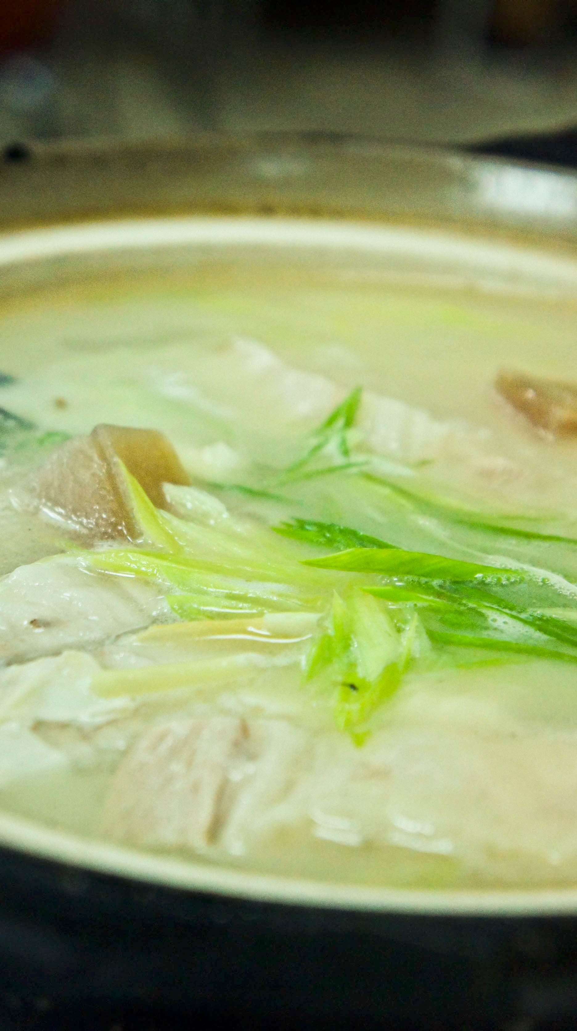 湯裡的其他的配料還有幾個固定班底:筍子、青江菜、百葉結,另外一個則是台灣上海餐廳特別喜歡的蒜苗。蒜苗的味道是神來之筆,總要有一點清新撲鼻才能把肉的鮮味發揮徹底。有人認為醃篤鮮的鮮料不只是鮮肉,鮮筍、鮮菜也算鮮的一種,我覺得不無道理,只要別讓我湯裡撈不到一塊塊肥豬肉就好。