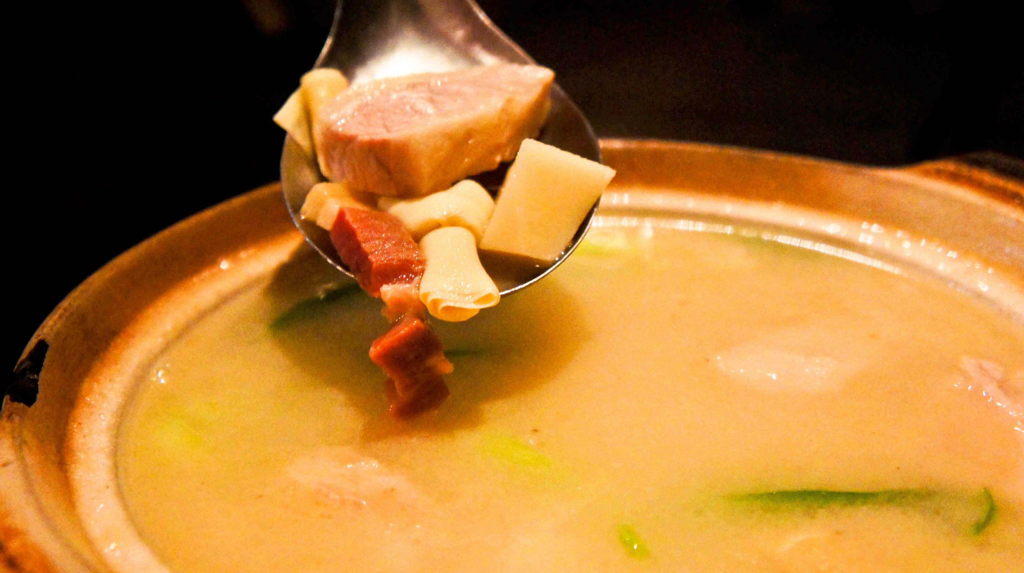 「篤」這個字,寫不出來。左邊火,右邊馬,念作「篤」,嘟嘟嘟嘟嘟~是指湯在滾的聲音,也是這道菜的做法,這道菜冒著熱氣滾啊滾,最好吃就要放在砂鍋裡熬,冷冷的天氣擺上一鍋,靠著昏黃的燈火,感覺真暖,真安心。