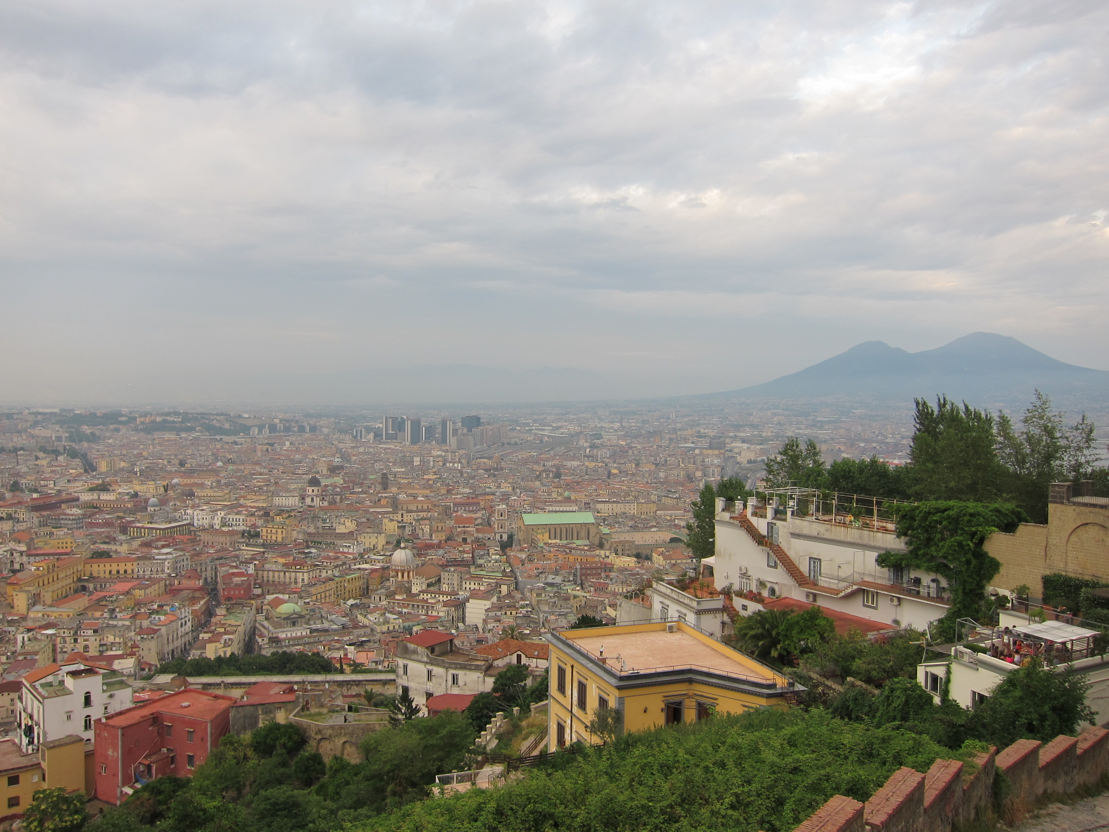 接近傍晚的時候,我們鬼迷心竅在大打折的購物街上流連忘返,直到七點多才想起還有百萬夜景。當然那個時間太早是不可能看到夜景的,但是看白天的應該也很不錯,夕陽西下,有維蘇威火山當背景的拿坡里應該很美。朋友有點擔心時間不夠,因為我們要搭九點的渡輪去西西里,而且中間還要彎去火車站拿行李,但我想說坐個纜車上去不是只要七分鐘嗎?應該來得及吧。沒想到這個天真的想法卻引發了前所未有的「拿坡里大暴走」!