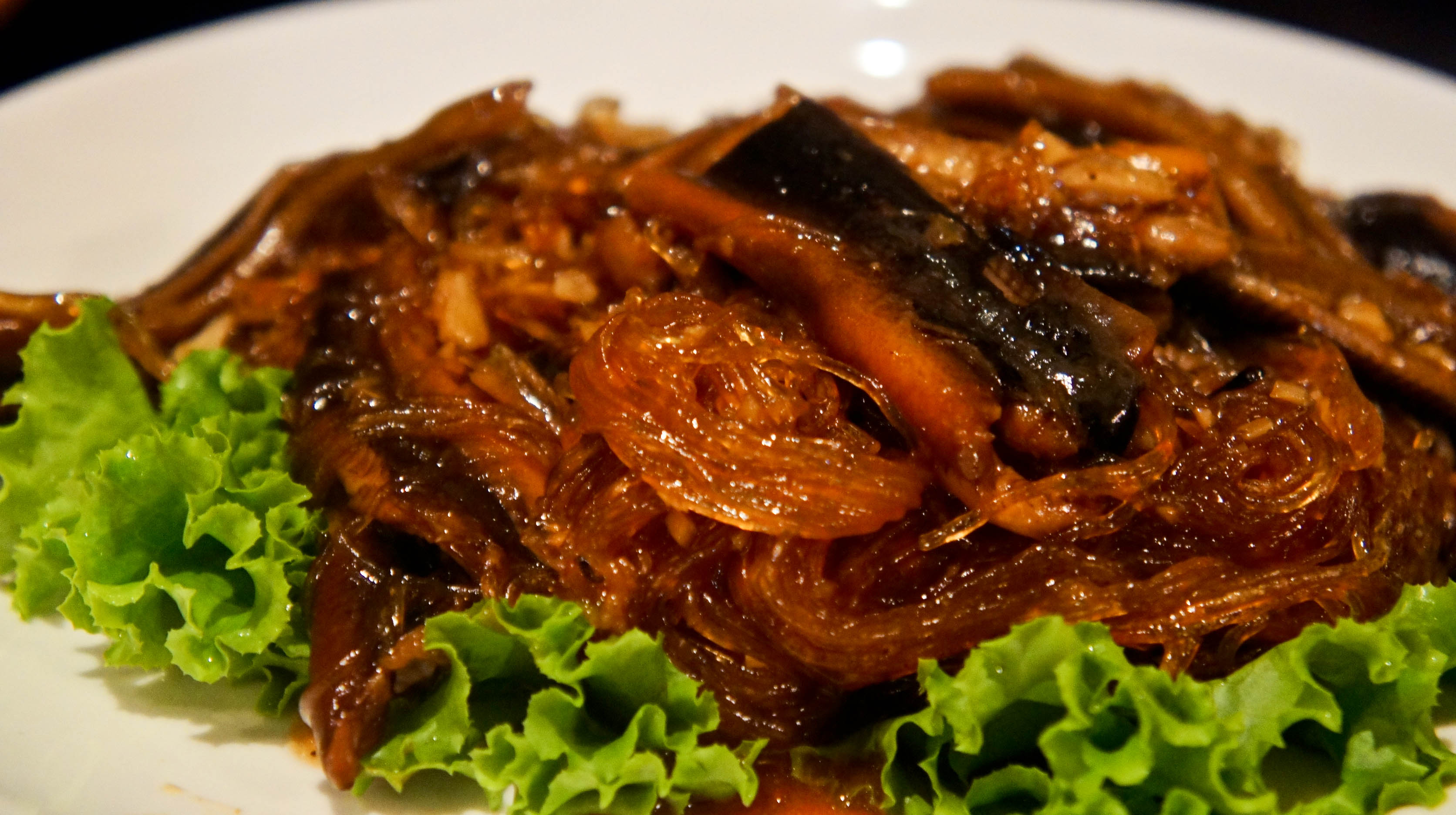 對於追求美食的重症患者,我個人的推薦則是加強版的軟兜帶粉,帶粉的意思是「加粉絲」,一盤軟兜炒好了以後不要離開爐子,把泡過水的冬粉投進鍋子中甜甜鹹鹹的醬汁裡,用著鍋杓順著烈火勾啊勾的把醬汁往冬粉給煨進去。上桌的時候盤子裡裝的是一片片的軟兜和碗底吸飽湯汁的冬粉,冬粉裡的味道是醬汁的精華,香氣濃郁,往往比軟兜還要搶手。做這道料理的冬粉要夠濕潤,用湯匙就能切斷,這樣才算把醬汁的味道給吸飽。