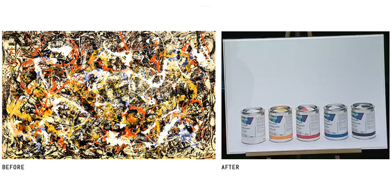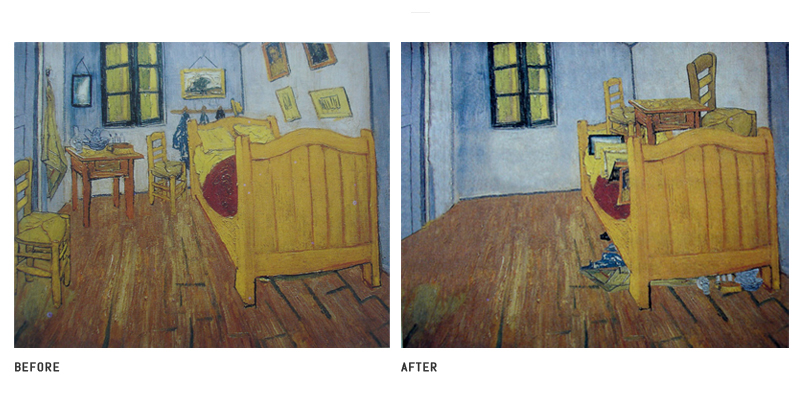 這樣化繁為簡的過程,Ursus 非常的樂在其中,並將層次提升至挑戰較為複雜的畫作,大部份的作品在第一次看到原作時,觀者皆無法想像他將如何重新排列組合,而在看了他的簡化結果,無不大嘆他的創意與絕妙的幽默感。以下兩幅作品皆是家喻戶曉的名作,分別為梵谷的《在 Arles 的房間》(La chambre de van Gogh à Arles)、以及傑克森.波拉克(Jackson Pollock)以滴畫法繪製的《第八號》(Number 8)。在 TED 協會的演說上他解釋道:梵谷的房間擺設,可以有更整齊的擺法;而波拉克的大作,是如此的複雜沒有一定的規則可循。這兩幅作品要簡化可真不容易,因此他將梵谷的傢具們全數堆疊在床上,而波拉克的畫作則是還原至五個不同顏色的顏料罐,這樣的成果帶來大大的驚喜,獲得了滿堂喝彩。