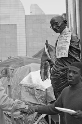 跟我同行的是一個學雕塑的男生,他本來打算做一些工藝品給那些參與活動的人。他還跟我談起馬克思主義跟美國病態的消費文化。但是到了那裏幾分鐘之後,他告訴我他今天不打算實行計劃了,因為他有點害怕。我沒有想嘲笑他,只是他的例子,可以作為一個典型來觀察。有的時候不是好心就好了,我們既有的世界觀,會讓我們的道德有了區別,讓我們的反抗有了底限。我們只能在一定程度上做好事。本來這也沒什麼不好。但實情是,真正的苦難通常都是超過「一定程度」,而這會讓那些弱勢者看起來令人畏懼,因為他們無法以「正常」的姿態存活在這個社會。只有當你發覺你所謂人生的基石其實不再穩固,你隨時隨地都可能踏在半空之中,你才會想起那些壞同學,想起那些底層的人,其實只是不知道如何是好而已。