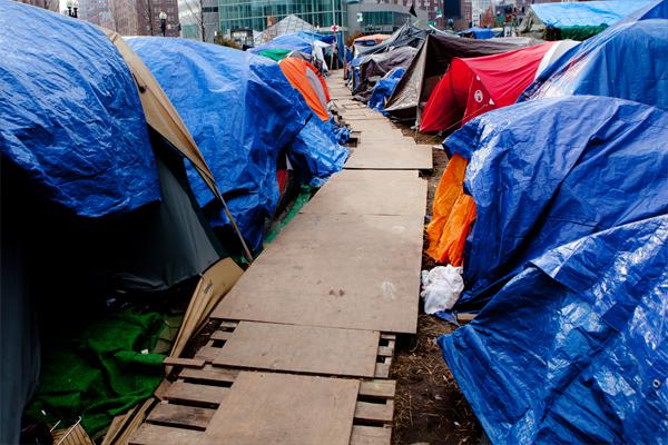 我問一個人這個活動會持續多久?他說這是一個好問題,如果天氣好一點,可能會撐久一點,但也有可像佔領華爾街的活動一樣。所以我問他:紐約的活動結束了?他沒有回答,表情似乎有點尷尬。我就沒有再問了。