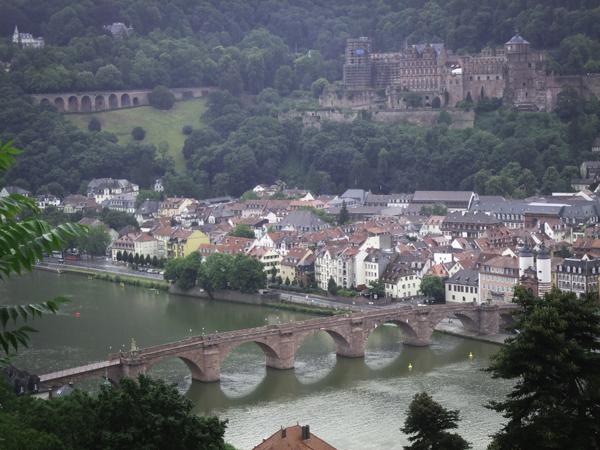 眺望整個海德堡,從對岸山坡上的城堡到底下的大學城,在細雨之中彷彿沉睡著,像是個賴床的孩子或坐或臥,在這樣慵懶的日子裡偷閒。