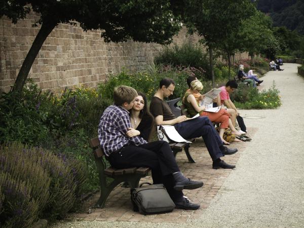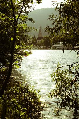 在刺眼的陽光中醒來之後,我試圖帶著 L 去經歷我曾經在這個城市所擁有的美好,走過了熟悉的小徑與風光,終日的陽光灑落讓城市充滿了更加鮮豔活潑的色彩,古堡斷垣上的遊客依然不時閃動著快門,而森林中也有著似曾相似的跑者匆匆經過,河畔的小徑中反映粼粼波光,流年偷換中似乎並沒有帶走城市的什麼,我相機所記錄的也與過去差異不大,自古以來許多人就如同歌德一般在這裡遺落了他們的心緒,而我卻正好相反,海德堡石磚牆瓦間迸發的種種與內卡河的泉湧交錯著一種新興的生命力,我想那越是古老的磚牆或是看過太多別離歡憂,她們所予人的感受是那麼歷久彌新的活力,一種安穩沉著卻又不失創新的清新。