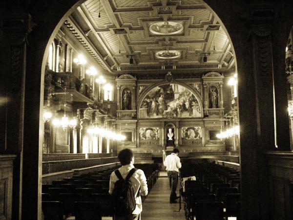 從城堡下來沿路逡巡,又走了幾個教堂,有灰白牆圍的,有一樣磚紅的,有些斑駁,有的則典雅素淨,而海德堡大學的圖書館低調卻又難掩光芒地靜靜存在著巷弄之間,和外觀有些反差的學院中壯麗地令人崇拜,或許用壯麗這樣的詞彙太過神化,他佇立在來往喧嘩的城市中,儼然位居核心,一個靠著思維和知識繁衍而生的都市就該有這樣一座令人神往的寶庫。正值期末考的高峰期,我們的造訪顯得有些突兀,走在迴廊中,看著他們的古雅有致的建築和陳列琳瑯滿目的研究成果,我們是否也擁有這樣令人傾羨的元素?