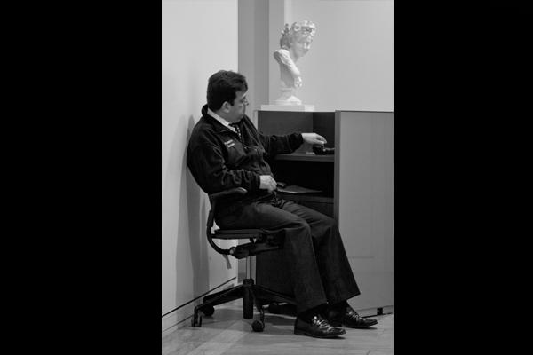 Robert Adams 認為新奇、秩序是好照片必須具備的條件。這幾乎是攝影師之間公開的秘密,只要你掌握了他們,你就可以讓災難變得美麗,讓死人生氣勃勃。但是關於無聊,我們還能從中發現一樣的東西嗎?當我們拍攝無聊的人或物,我們能像 Susan Sontag 所説,因此消除了未知恐懼並滿足了道德的焦慮,就像我們看到畸形人與非洲兒童一樣?無聊,作為一個攝影師厭惡的題材,或許正足以檢視攝影的本質。這一系列的照片都是在博物館中所拍攝,包括 Museum of Fine Art 跟 Metropolitan Museum。對我而言,沒有比在一個美的環境之中卻感到無聊,更是諷刺、無聊了。