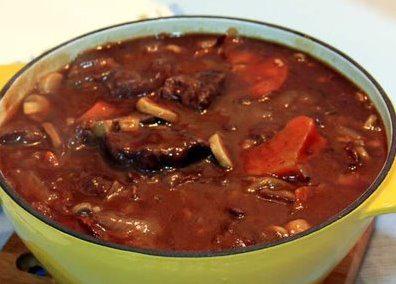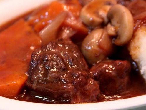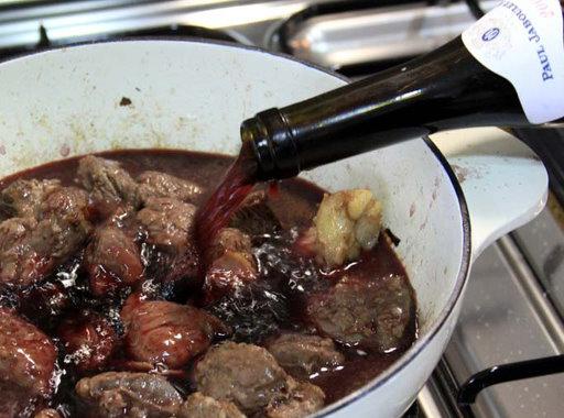 Julia在食譜中建議了下列四款很貴的紅酒:Beaujolais、Cȏtes du Rhȏne、Bordeaux-St. Έmilion、Burgundy,雖說紅酒的品質會影響到燉牛肉的味道,不過我們自己在家做還是以儉樸簡單為準,大賣場買的廉價紅酒就將就點用吧!