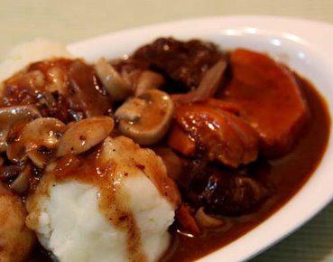 一般來說,紅酒燉牛肉都是搭配馬鈴薯泥或是蒸飯麵包食用,當然東方人的口味,搭配白飯或是各式義大利麵也是非常合適的,雖然看似有著繁瑣的程序,但看著燉鍋裡,牛肉慢慢軟去。彷彿開瓶讓勃根地紅酒甦醒,曼妙複雜精彩,品嚐著單寧細緻的酒,像是置身果園,聽見每顆葡萄發酵成熟的聲音。