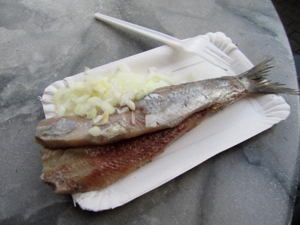 即使你愛吃生魚片,也不能夠保證可以接受 haring,這個荷式生魚小吃——鯡魚。這個長約 15 公分的魚,清除大骨和內臟洗淨後,即可生吃。超市買得到,但我建議找市集裡賣魚的攤販嘗試新鮮的口味。