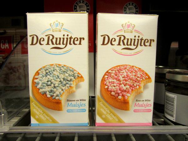 Muisjes 除了在日常生活中食用,在新生兒誕生的這一天更是扮演重要的角色。根據荷蘭的傳統,如果家裡有小嬰兒出生,父母就會準備撒上 muisjes 的麵包甜點(rusk)分送給親朋好友吃:新生兒是個女孩兒,就用粉紅色和白色 muisjes;若是男孩兒,則用藍色和白色 muisjes。用色彩鮮艷的 muisjes 點綴而成的甜點真的看起來很可口,也很符合慶生會的歡樂氣氛,但是別忘了,一旦糖衣溶化後,滿嘴就是濃郁的八角味囉。