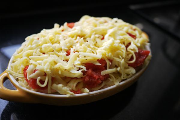 用叉子或筷子插入馬鈴薯,若可輕鬆插入即已熟透。將馬鈴薯取出,趁熱剝皮再切片。將其中一條明太子加入白醬中,攪拌均勻,另一條則切成小塊,同時預熱烤箱至 200℃。接下來是層層堆疊的時刻:在烤盤的底部鋪一層馬鈴薯,再覆以明太子白醬,再一層馬鈴薯、一層明太子白醬,直到裝滿烤盤。於最上層,隨意點綴切塊的明太子,最後再鋪上滿滿的披薩起司,放入預熱好的烤箱,烤 10 至 15 分鐘,直到起司微焦流洩,即完成。