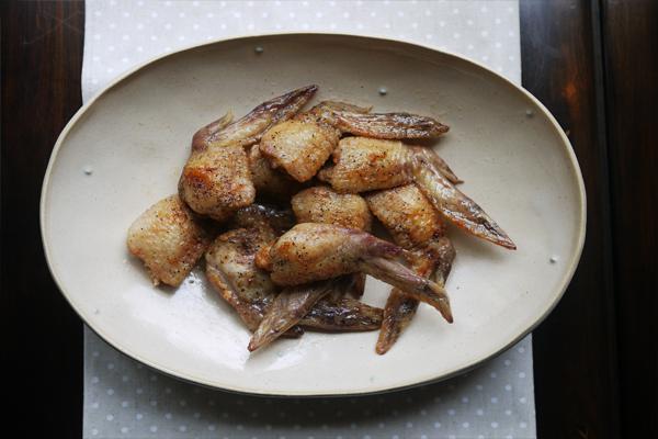 預熱烤箱至 200℃。在組裝好的明太子雞翅表面均勻灑上鹽及胡椒,放入烤箱內烘烤約 10 分鐘,翻面,再烤 10 分鐘,直到雞皮變得金黃酥脆,即完成。一般會於中途刷上烤肉醬,但我獨鍾鹽烤雞翅,因此略過。若你喜愛醬烤的滋味,亦不妨刷上烤肉醬。