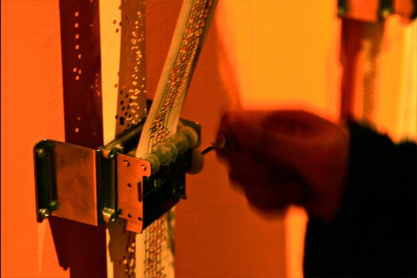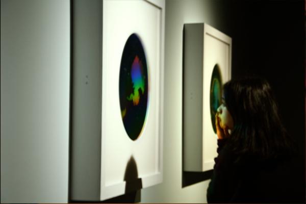 艾力克斯.戴維斯(Alex Davies) 的〈位移〉非常有趣,甚至帶著一點詭異。藝術家運用空間結合影像感應效果,在空無一人的房間牆上挖出四個小孔,當人們好奇伸頭過去偷窺時,會看到自己正在偷窺的背影,以及背後出現的人影。於是你會有一陣毛骨悚然,因為你漸漸分不清那些人影究竟是虛幻的效果還是跟你一樣來看展覽的觀眾。