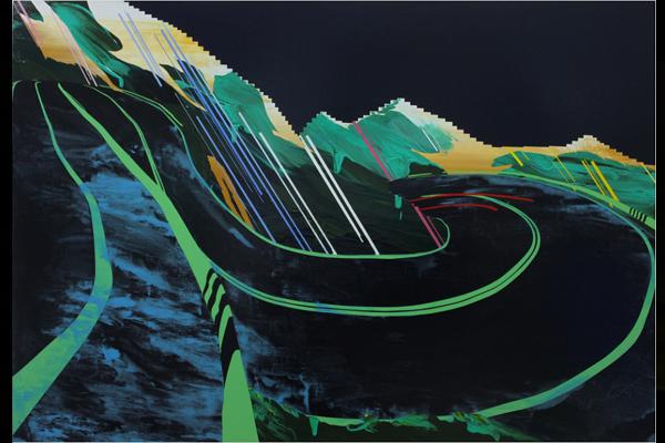 周代焌的作品特色在於線條的運用,空間景色到了他手中彷彿都被格式化,彷彿地圖或設計藍圖中的那些純粹線條。在曲線與塊狀畫面裡,他以多空間的畫面試圖將視訊動態在平面畫作上呈現出來,此外,我們也看到創作者對日本核災與臺灣核電廠之間的憂慮。