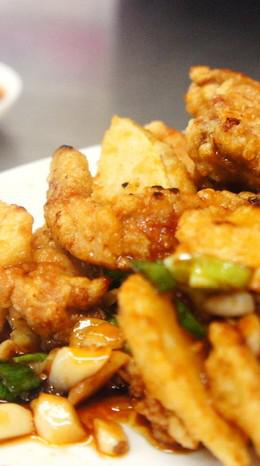 把排骨肉加了紅糟醃好,裹上薄粉酥炸,再淋上芡汁快炒,香氣四溢,滑順軟嫩,這道菜叫醉排骨,是老一輩台式酒家菜的常客。因應台灣的口味多加了話梅或白醋提鮮,多甘少酸,深諳味韻安排的巧妙,對我來說是優雅版的糖醋排骨─微酸不嗆,味道更靈活;甜裡帶甘,滿足於韻味而不膩於口。紅糟比起茄汁,撲鼻的酒香又大勝一籌。跟朋友吃這道菜手腳不能太慢,排骨的大小一份剛好一口,桌子轉兩圈盤底就朝天,還是先夾個兩塊起來再慢慢陶醉比較實在。