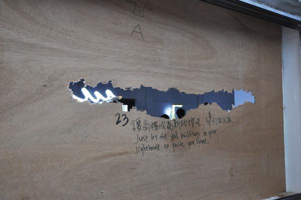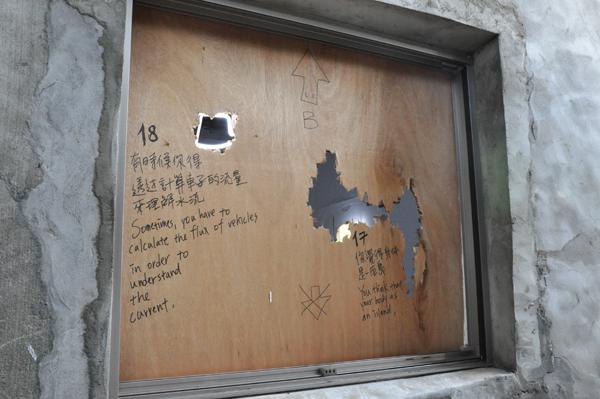 〈飛翔的荷蘭人〉這次在寶藏巖藝術村透過不同的方式重新裝置,並且將當時書寫的台南-橫濱文本錄製成聲音放在藝術村的語音導覽系統中。請各位觀眾不要忘記租借這個語音導覽的系統,從現場的裝置空間與聲音的空間兩個部分參與這件作品。