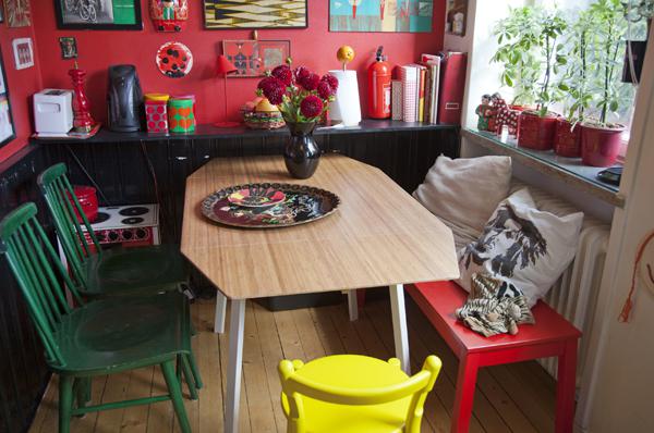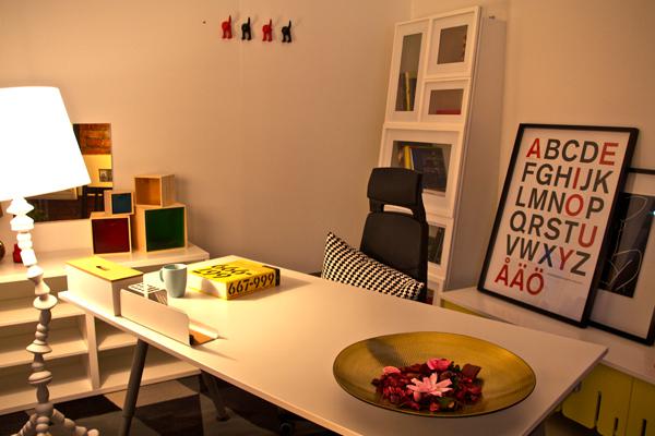 其中,包益民選擇將 IKEA PS 2012 玻璃門櫃融入女兒的房間,大大小小的填充玩具擺入如同各式畫框拼成的玻璃門櫃,形成牆面上的另一種趣味風景。林育賢則使用 IKEA PS 2012 咖啡桌以及 IKEA PS 2012 穿鞋凳在自己的工作室玩創意,有輪腳的咖啡桌能夠隨處移動,除了置物用途,推到工作桌旁又是新增的使用空間,還能兼顧搬運物品的功能。色彩鮮艷的 IKEA PS 穿鞋凳則兼顧展示與收藏,既是鞋櫃、椅凳也可以是窗邊的展示邊几。