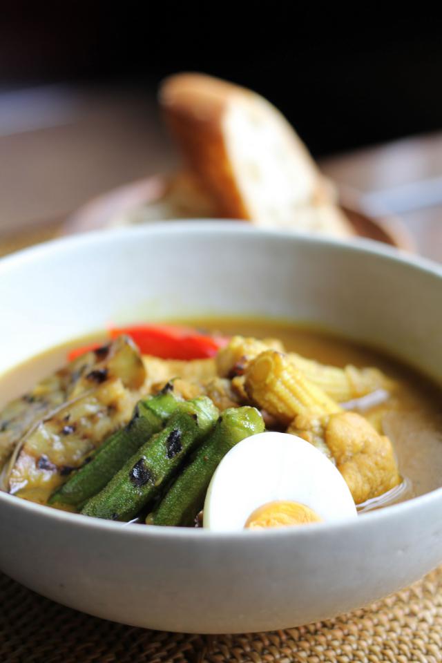 湯咖哩是北海道名產,顧名思義,其湯汁不如一般咖哩濃稠,而如湯水般稀薄,但絕非清湯寡水,而是辛香味十足、誘人胃口的料理,除有肉或海鮮,加入大量蔬菜是其另一特色,秋葵即為常見的湯咖哩食材。