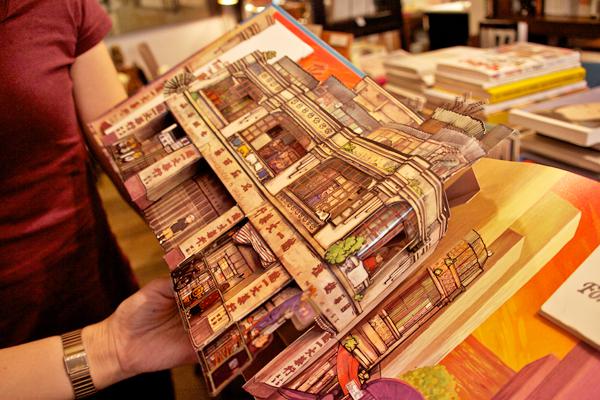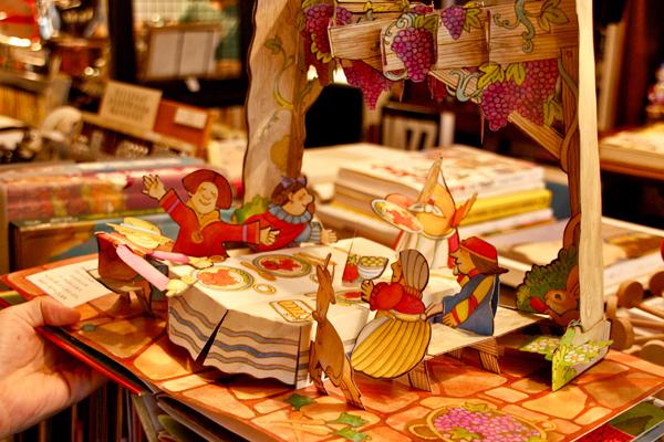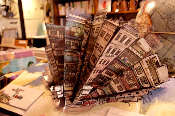 「好樣本事」很多書都是以圖片為主,大家能夠很方便的瀏覽,又很多書是旅遊時找到的外文書,大家可能看不懂內容,所以當然也是以好看的圖片為主。像我們今年就進了很多立體書,有幾本童話故事系列的非常受歡迎,小王子和美女與野獸等等,已經銷售一空了。像這本巫婆奶奶(小編看到這本時真的好驚喜喔!小時候就有看過這本童書,一直對源源不絕的麵很有印象,好懷念)就相當精美華麗,可以展開的程度也讓人很驚奇,我們的立體書都賣得相當好,因為在台灣真的比較少可以看到這麼精美的手工書。我之前也在想過,為什麼我們不看攝影、或影片就好了,而要看立體書呢?看看這本《香港彈起》,是以香港的街道為主,仔細地呈現香港房屋之間狹窄、擁擠的模樣,曬衣服的景況,更真實而讓我們可以觸摸的到,感覺的到那種氛圍,是平面的攝影感覺不到的。