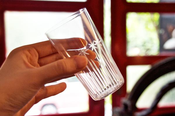 像目前在「本事」的這個「切子」系列,非常的輕薄,還有美麗的手工切割紋路。一般沒有特殊花紋的玻璃我們就叫它「硝子」,有切割花紋的就是「切子」。當師傅在切割紋路時,視覺其實是反向的,並須透過玻璃的凸面去看,其實是非常困難的技術,價格也相當不斐。